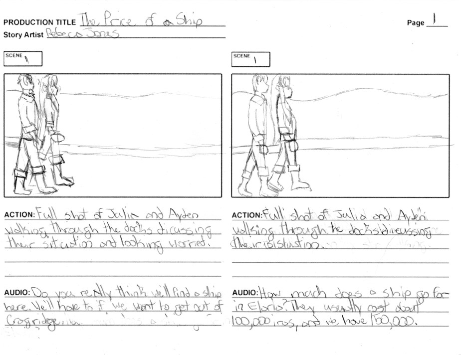 “The Price of a Ship” Hand-Drawn, Toon Boom Harmony, Photoshop, 24 FPS, Julia voiced by Becky Jones, Ayden voiced by Ralph Jones, Gonmec voiced by Matthew Ross-Jones
